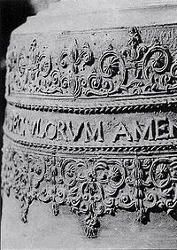 - ↑ Zdaniem K. M. Kowalskiego należy identyfikować św. Dionizego z dzwonu ze świętym Dionizym z Paryża, jednym z Czternastu Wspomożycieli, narodowego świętego Francji, których kult był popularny w późnym średniowieczu. Samo imię Dionizego pojawia się rzadko na dzwonach z tego okresu. Zob. K. M. Kowalski, Inskrypcje na dzwonach gotyckich w Prusach: studium z epigrafiki kampanologicznej, Gdańsk 2006, s. 200-201.