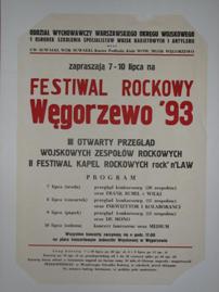 W ramach trzeciej edycji Festiwalu Rockowego Węgorzewo ‘93 odbyły się dwa połączone przeglądy festiwalowe : „III Otwarty Przegląd Wojskowych Zespołów Rockowych” oraz „II Festiwal Kapel Rockowych „Rock’n’LAW”. W koncertach konkursowych wzięło udział łącznie 50 zespołów. Zwycięzcą został zespół „Wolna Europa” z Opola.[1]Jako goście zaproszeni oraz gwiazdy wystąpiły zespoły: „Wilki”, „Inkwizytor”, „Kolaboranci”, „De Mono” oraz „Frank Rubel” z Węgorzewa i grupa „Medium” z Olsztyna (jako laureat poprzedniej edycji).