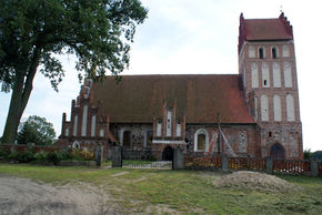 Pierwsze wzmianki o świątyni w tej miejscowości pochodzą z 1384 roku. W 1404 roku wspomina się już kamienną świątynię, które była rozbudowywana do końca XV wieku. Wieżę podwyższono w pierwszej ćwierci wieku XVI. Od czasów reformacji do 1945 roku była to świątynia ewangelicka, po drugiej wojnie światowej przejęła ją napływowa ludność katolicka. Samodzielną parafię utworzono tu z dniem 1 września 1986 roku. W latach 1989-1991 w kościele przeprowadzono gruntowny remont, natomiast w roku 2009 odrestaurowano wieżę.