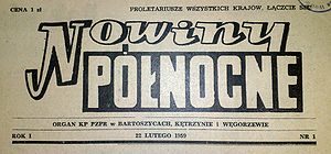 Do listopada 1959 r. „Nowiny Północne” ukazywały się jako organ KP PZPR w Bartoszycach, Kętrzynie i Węgorzewie. Na winiecie widniało hasło: „Proletariusze wszystkich krajów, łączcie się!”.