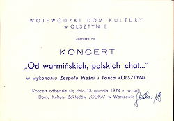 - 13 grudnia – koncert Zespołu Pieśni i Tańca „Olsztyn” (Dom Kultury Zakładów „Cora”)