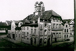 Ratusz został wzniesiony pod koniec XIV wieku. Przebudowano go po 1546 roku i po pożarze w 1655 roku. Obecną postać otrzymał w roku 1846. Na początku XVIII wieku obudowano go domami budniczymi (obecnie istniejące powstały w XIX stuleciu). Od momentu powstania budowli, nieprzerwanie znajduje się tam siedziba władz miejskich.