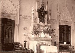 Był to budynek murowany z cegły, dwukondygnacyjny, podpiwniczony z użytkowym poddaszem. Składał się z korpusu głównego i dwóch skrzydeł bocznych, dobudowanych do elewacji ogrodowej. Całość złożona była na rzucie litery C i przykryta dachami wielospadowymi, krytymi dachówką. Budynek ozdobiono bogatym detalem architektonicznym. Nad wejściami zastosowano szczyty schodkowe (w elewacji frontowej dodatkowo z wieżyczkami) i okna ostrołukowe, ozdobne gzymsy i sztukaterie.