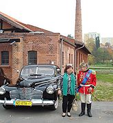 Andrzej Cieślak z Gabrielą Konarzewską - p.o. Dyrektora Biura Kultury Urzędu Miasta Olsztyna obok amerykańskiego samochodu Buick, Muzeum Nowoczesności, 14 października 2014 r.