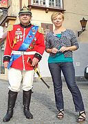 Andrzej Cieślak z Janiną Duliniec - byłą dyrektorką olsztyńskich liceów, członkinią władz wojewódzkich w latach 70., posiadającą odznaczenia: Zasłużony dla Warmii i Mazur, Zasłużony Nauczyciel PRL. Zdjęcie wykonano na Starym Mieście w Olsztynie 18 sierpnia 2014 r.