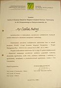 | + | File:ACieslak98.jpg|Certyfikat lidera społeczności lokalnej z 2010 r. | ||