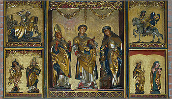 Do cennych zabytków zaliczyć trzeba znajdował się późnogotycki poliptyk w typie ołtarzy antwerpskich, znajdujący się w kaplicy „Ostatniej Wieczerzy” raz malowany tryptyk z 1485 roku ufundowany przez kanonika Tomasza Wernera w kaplicy „Matki Boskiej”.