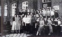 Przed szkołą dla dziewcząt prowadzoną przez siostry katarzynki. Fot. z 1937 roku.
